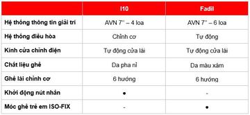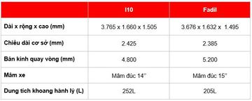 Về kích thước, i10 vẫn nắm ưu thế lớn với không gian rộng rãi và thoải mái, đặc biệt là với kích thước hạn chế của một mẫu xe hạng A. Đặc biệt, dung tích khoang hành lý của i10 lớn hơn đáng kể so với Fadil, đảm bảo khả năng chuyên chở hiệu quả.