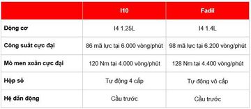 Về vận hành, Fadil với động cơ vượt tầm phân khúc chiếm ưu thế hoàn toàn so với động cơ 1.2 truyền thống của i10. Động cơ 1.4L kết hợp với hộp số vô cấp CVT mang đến cho Fadil khả năng vận hành êm ái, nhàn nhã và linh hoạt hơn đối thủ Hàn Quốc.