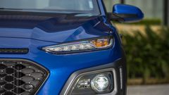 Trang bị ngoại thất trên bản cao cấp nhất của Kona cũng hấp dẫn, đầy đủ hơn EcoSport. Xe trang bị đèn pha bi-LED có tính năng bật/tắt tự động, có hỗ trợ chiếu góc, đèn hậu LED... còn trên EcoSport chỉ dùng các bóng halogen.