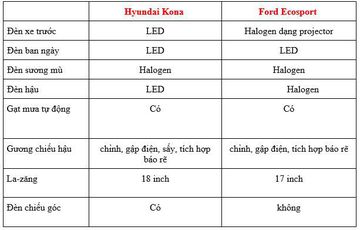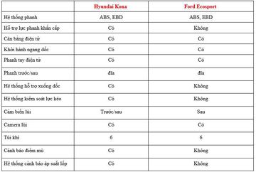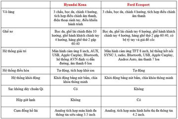 So sánh Hyundai Kona 2020 và Ford EcoSport 2020