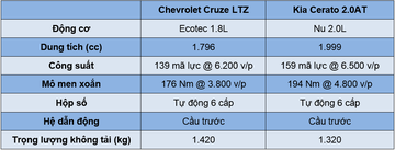So sánh nhanh Chevrolet Cruze 2017 và Kia Cerato 2017