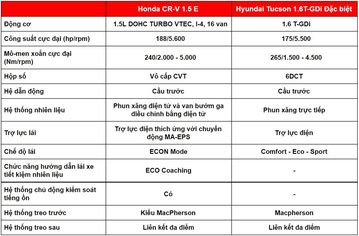 Trong bài viết hôm nay, chúng tôi sẽ so sánh nhanh thông số 2 phiên bản Honda CR-V 1.5 E và Hyundai Tucson 1.6 T-GDi nhằm giúp người dùng có cái nhìn sơ lược về sự khác nhau giữa 2 dòng xe này.