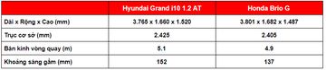 Ngoài ra, i10 1.2AT cũng có khoảng sáng gầm cao hơn hẳn so với Brio G, do đó khả năng “leo lề, lội nước” sẽ tốt hơn. Về phía Brio G, với bán kính vòng quay nhỏ nên xe cũng sẽ vận hành linh hoạt trong điều kiện đường sá đô thị chật hẹp.