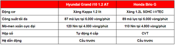 Xét về khả năng vận hành, mẫu xe nhỏ đến từ Nhật là Honda Brio G chiếm lợi thế hơn khi không chỉ được trang bị động cơ mạnh mẽ hơn, mà còn được trang bị hộp số vô cấp CVT, mang lại cảm giác lái thú vị hơn so với hộp số tự động 4 cấp trên i10.