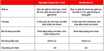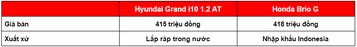 Xét về giá bán thì Hyundai Grand i10 1.2 AT và Honda Brio G đều “sêm sêm” nhau. Mức chênh lệch con số chỉ 3 triệu đồng. Trong khi đó, về nguồn gốc xuất xứ thì chất lượng xe lắp ráp trong nước và nhập từ Indonesia cũng không có quá nhiều khác biệt.