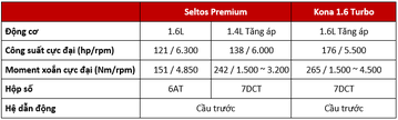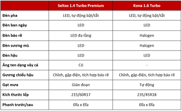 So sánh nhanh Hyundai Kona 1.6 Turbo và Kia Seltos 1.4 Turbo Premium