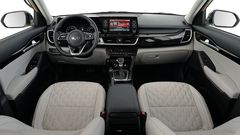 Nếu như Hyundai Kona là một dòng xe có thiên hướng nội thất tròn trịa và thể thao thì nội thất của Kia Seltos lại thiết kế theo hướng phẳng với các đường gấp dứt khoát tạo cảm giác rắn rỏi, mạnh mẽ và không kém phần sang trọng với việc nối liền cụm đồng hồ sau vô-lăng với màn hình giả trí trung tâm.