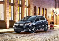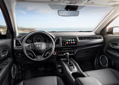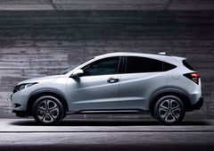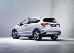Trong khi đó, Honda HR-V lại chọn phong cách lai Coupe với đường nét mềm mại, bo tròn. Nhìn từ đối diện, dễ dàng nhận ra lối bố trí quen thuộc của Honda với cụm đèn pha nối liền với thanh nẹp chrome to bản, chễm chệ ở chính giữa là logo hình chữ H. Ngay dưới là hai hốc đèn sương mù được ốp nhựa đen cứng cáp. Phần thân xe được vuốt dốc về trụ C, tay nắm cửa tích hợp lên cửa kính sau và đuôi lướt gió trên cao. So với đối thủ thì kiểu dáng này có phần “nhịn mắt” hơn, đặc biệt là với người trẻ hiện đại.