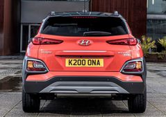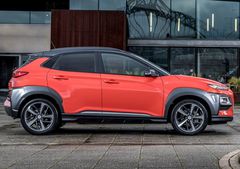 Trang bị ngoại thất trên HR-V và KONA tương đương nhau: hệ thống đèn pha/đèn hậu/đèn chạy ban ngày đều là dạng LED, đèn pha tự động bật tắt, cảm biến gạt mưa tự động, gương chiếu hậu gập chỉnh điện tích hợp báo rẽ. Điểm khác biệt chính là: HR-V dùng đèn sương mù LED, la-zăng hợp kim 17-inch còn KONA là đèn sương mù halogen, la-zăng hợp kim 18-inch.