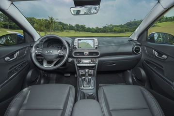 Vô-lăng trên hai xe đều được bọc da, tích hợp điều chỉnh âm thanh, đàm thoại rảnh tay. Kona có thêm chức năng ga tự động Cruise Control và 3 chế độ lái gồm Comfort - Eco - Sport, đáp ứng mọi nhu cầu của hành khách như đi trong phố nhẹ nhàng (Eco), tăng tốc thể thao trên xa lộ (Sport).