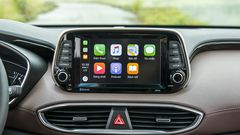 Hyundai Santa Fe dùng màn 8-inch, hỗ trợ Apple CarPlay, bản đồ định vị dẫn đường dành riêng cho thị trường Việt Nam, kết nối USB/Bluetooth/MP4/AUX. Hệ thống âm thanh 6 loa với bộ xử lý Arkamys Premium Sound cho chất lượng tốt hơn đối thủ.