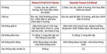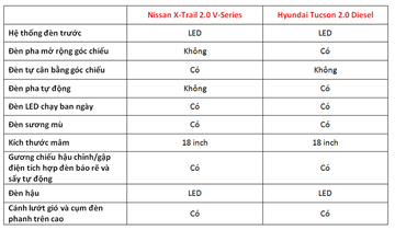 Ở phiên bản mới, Hyundai Tucson được bán ra tại Việt Nam với xe lắp ráp trong nước thay vì nhập khẩu nguyên chiếc như trước đây, Nissan X-Trail có lợi thế là xe SUV 5+2 chỗ ngồi giúp đáp ứng yêu cầu lựa chọn xe SUV cho gia đình đông người.