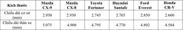 Theo thông số chính thức mà Thaco Mazda đưa ra, Mazda CX-8 có chiều dài trục cơ sở 2.930mm và độ dài tổng thể thân xe là 4.900mm. Với thông số này thì CX-8 là chính là chiếc xe có kích thước lớn nhất trong phân khúc.