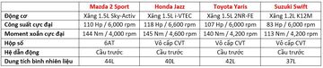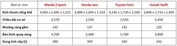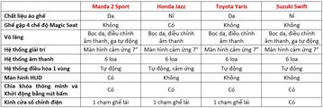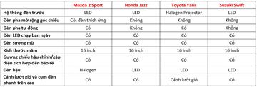 - So sánh nhanh Mazda2 Sport 2020 với Toyota Yaris, Honda Jazz và Suzuki Swift