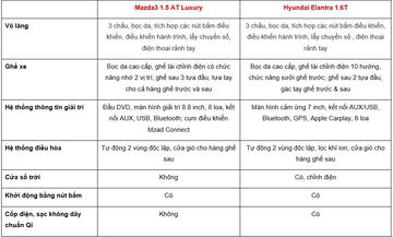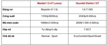 Với tiêu chí về giá bán, bài viết dưới đây sẽ so sánh 2 bản là Mazda3 1.5AT Luxury và Hyundai Elantra 1.6T.