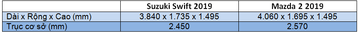 So sánh nhanh Suzuki Swift 2019 và Mazda 2 2019