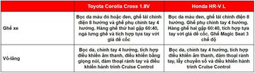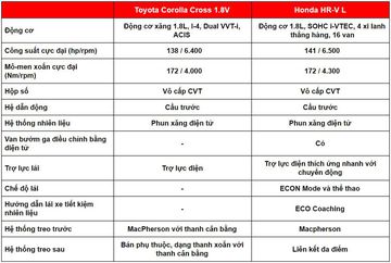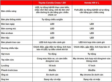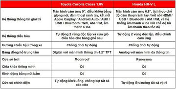Trong bài so sánh dưới đây, chúng ta sẽ chọn 2 phiên bản có mức chênh lệch thấp nhất là Corolla Cross 1.8V và Honda HR-V L để đặt lên bàn cân. Hai dòng xe này cũng gần như hội tụ tất cả trang bị tốt nhất của mẫu xe này, hứa hẹn sẽ có sự cạnh tranh cân bằng nhất dưới đây.