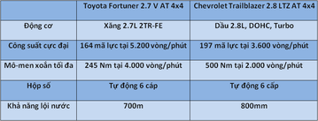 Dễ thấy Chevrolet Trailblazer đều nhỉnh hơn ở mọi thông số, sở hữu thân hình “đô con” hơn hẳn đối thủ từ Nhật Bản.
