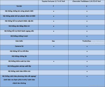 So sánh nhanh Toyota Fortuner 2018 và Chevrolet Trailblazer 2018