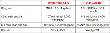 Sức mạnh trên Honda Jazz RS và Toyota Yaris có thể nói là “thừa sức” giúp hai mẫu xe này phục vụ nhu cầu chính là đi lại trong phố và cuối tuần đi xa như cắm trại, về quê.