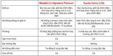 So sánh nhanh trang bị Toyota Camry 2020 và Mazda6 2020
