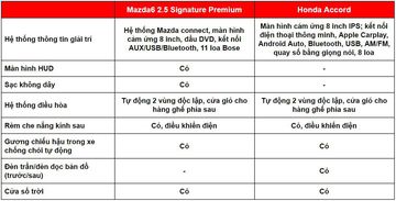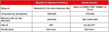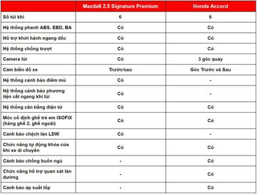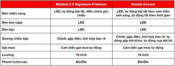 So sánh nhanh trang bị trên Honda Accord 2020 và Mazda6 2020