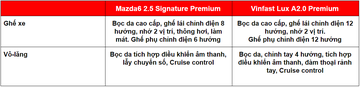 So sánh nhanh trang bị trên Mazda6 2020 và VinFast Lux A2.0 2020