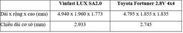 So sánh nhanh Vinfast LUX SA2.0 và Toyota Fortuner 2.8V 4x4