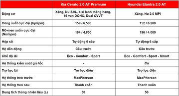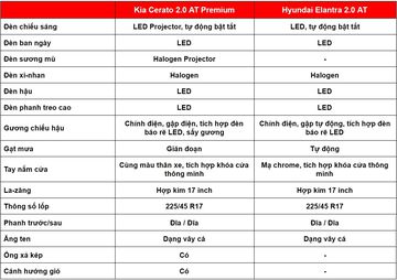 Với giá bán thấp hơn 14 triệu đồng, Kia Cerato 2.0 AT Premium đường như đáng giá hơn so với Hyundai Elantra 2.0 AT. Cả hai đều có khả năng vận hành gần như tương đồng, trong khi đại diện của Kia cho thiết kế thể thao hơn hẳn. Trong khi đó, Hyundai Elantra 2.0 AT dường như lựa chọn các tiện nghi và tính năng là thế mạnh cho mình.