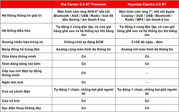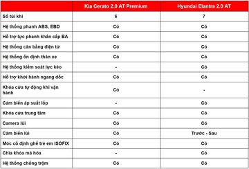 So sánh trang bị trên Kia Cerato 2021 và Hyundai Elantra 2021
