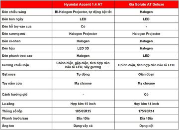 So sánh trang bị trên Kia Soluto 2021 và Hyundai Accent 2021
