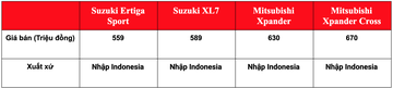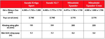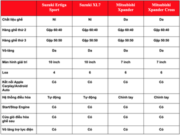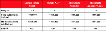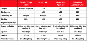 - So sánh trang bị trên Suzuki Ertiga Sport, XL7, Mitsubishi Xpander và Xpander Cross