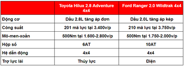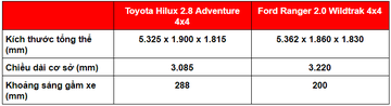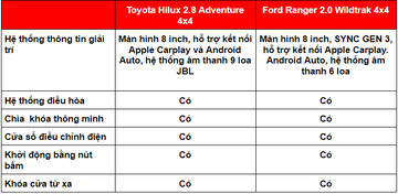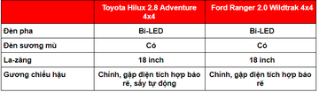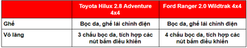 Dưới đây, để thấy rõ sự hơn - thua giữa 2 địch thủ, danhgiaXe sẽ so sánh nhanh trang bị trên các phiên bản cao cấp nhất của 2 dòng bán tải này.