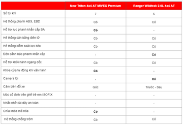 Phiên bản cao cấp nhất của mẫu bán tải đến từ Nhật là Mitsubishi Triton Athlete 4×4 AT, được ra mắt khách hàng Việt vào tháng 11/2021 để thay thế cho hai phiên bản AT Premium. Trong khi đó, bản cao cấp nhất của Ford Ranger là Wildtrak 2.0L 4x4 AT nâng cấp đã được ra mắt vào hồi tháng 2/2020.