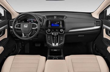 Honda CR-V 1.5 E CVT 2021 vẫn sở hữu khoang nội thất đơn giản và cân đối. Điểm nhấn chính nằm ở kết cấu 7 chỗ theo dạng 5+2 giúp chở thêm được hành khách khi cần thiết. Khu vực táp-lô thiết kế đối xứng, sử dụng ốp kim loại hiện đại. Ở chính giữa là màn hình giải trí trung tâm 5 inch, ngay dưới là các nút bấm bố trí gọn gàng, dễ sử dụng.
