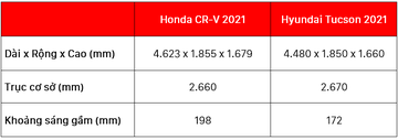 So sánh xe Hyundai Tucson 2021 và Honda CR-V 2021