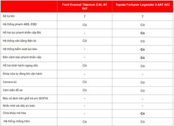 Xét một cách tổng thể thì cả 2 xe đều phù hợp với nhu cầu mua xe phục vụ gia đình, công việc. Tuy nhiên, Toyota Fortuner Legender là lựa chọn đáng cân nhắc hơn cho những khách hàng đánh giá cao tiêu chí về khả năng giữ giá khi bán lại, chuộng thương hiệu Toyota. Bên kia chiến tuyến, Ford Everest Titanium 2.0L AT 4x2 là lựa chọn phù hợp cho những khách hàng thích cảm giác lái đầm chắc, muốn một chiếc SUV có máy khỏe với ngoại hình đậm chất cơ bắp Mỹ.