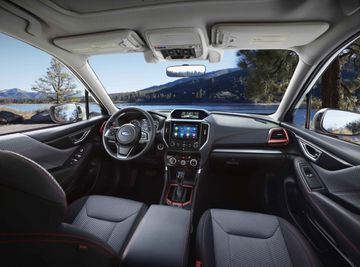 Không gian nội thất của Forester thế hệ mới cũng được thiết kế lại với kích thước rộng rãi hơn. Phanh tay truyền thống được thay bằng nút tự động giữ phanh mới, mở ra nhiều không gian hơn ở bảng điều khiển trung tâm. Bảng điều khiển trung tâm nay được tích hợp cổng sạc USB và điều khiển hệ thống thông gió điều hòa. Cốp sau chỉnh điện tự động cho phép mở, đóng và khóa xe chỉ với một nút bấm.