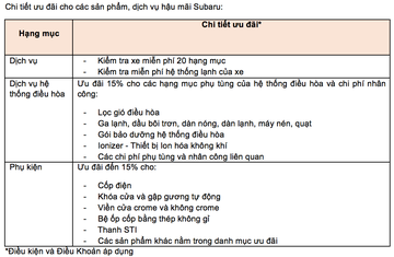 Chi tiết ưu đãi cho các sản phẩm, dịch vụ hậu mãi Subaru: