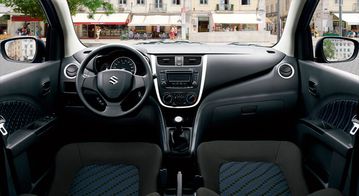 Nội thất Suzuki Celerio 2018 với tông màu đen. Ghế nỉ là trang bị tiêu chuẩn; điều hòa hai chiều chỉnh tay, đi kèm là khóa cửa trung tâm, cửa sổ điện,…