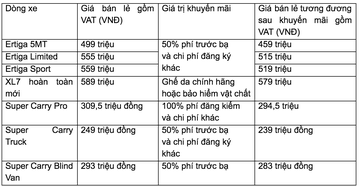 Tham khảo bảng giá ô tô Suzuki và giá trị khuyến mãi tháng 9: