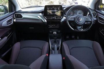 Không gian nội thất bên trong của mẫu SUV lai Coupe này có nhiều chi tiết tương tự như trên Baleno như mặt táp-lô hay ghế. Hệ thống ghế trên xe được bọc nỉ, vô lăng bọc da, vát đáy thể thao có tích hợp phím chức năng/lẫy chuyển số vô cùng tiện lợi. Suzuki Fronx 2023 được trang bị bảng đồng hồ analog tích hợp màn hình đa thông tin, màn hình cảm ứng trung tâm 9 inch kết nối hệ thống thông tin giải trí Smart Play Pro+.