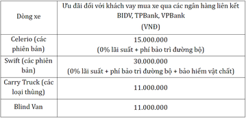- Ưu đãi đối với khách vay mua xe qua các ngân hàng liên kết BIDV, TPBank, VPBank