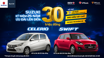 Tháng 11/2019, Suzuki tiếp tục mang đến chương trình ưu đãi hấp dẫn nhằm tri ân khách hàng đã yêu mến và ủng hộ hãng trong suốt 25 năm hoạt động tại Việt Nam.