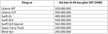 Chi tiết chương trình ưu đãi, khách hàng vui lòng liên hệ đại lý. Tham khảo bảng giá ô tô Suzuki:
