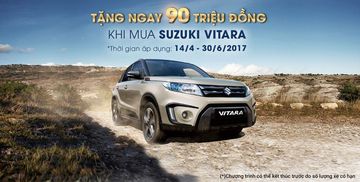 Thông tin từ website chính thức của Suzuki Việt Nam cho biết, từ 18/4/2017 đến hết 30/6/2017, khách hàng khi mua Suzuki Vitara 2016 sẽ nhận được khuyến mãi lên đến 90 triệu đồng.