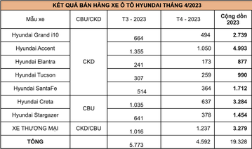 Tập đoàn Thành Công (TC GROUP) thông báo kết quả bán hàng tháng 4/2023. Theo đó, tổng doanh số xe Hyundai tháng 4 đạt 4.592 xe.