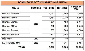 TC MOTOR công bố kết quả bán hàng tháng 7/2020. Theo đó, tổng doanh số xe ô tô Hyundai tháng 7 đạt 7,606 xe, tăng 35.5% so với tháng trước đó, cộng dồn 7 tháng đầu năm đạt 35,620 xe.