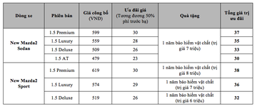 Bảng giá và chương trình ưu đãi New Mazda2 từ ngày 13/10 /2021, cụ thể như sau: