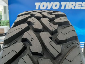 Đặc trưng của dòng Toyo Open Country M / T là những cấu trúc thiết kế gai đi cùng công thức chế tạo cực hợp lý với địa hình khó đa dạng. Toyo đặc biệt có kiểu hoa lốp dạng khối gai mở tràn hông. Hoa lốp mở rãnh rộng, có khối vai sò lớn trên mặt, đi cùng gai tách hướng trong rãnh lốp giúp ngăn chặn hoặc đánh bật bùn hoặc đá ra khỏi mặt lốp dễ dàng, duy trì độ bám đường Off-road. Bên hông tại vai lốp, khối gai vẫn tiếp tục tràn rộng kèm các cầu nối tại vai gai lốp giúp ích cho độ bám tốt ở đường bùn, lầy khi lốp lún sâu vẫn có lực bám cực chắc.